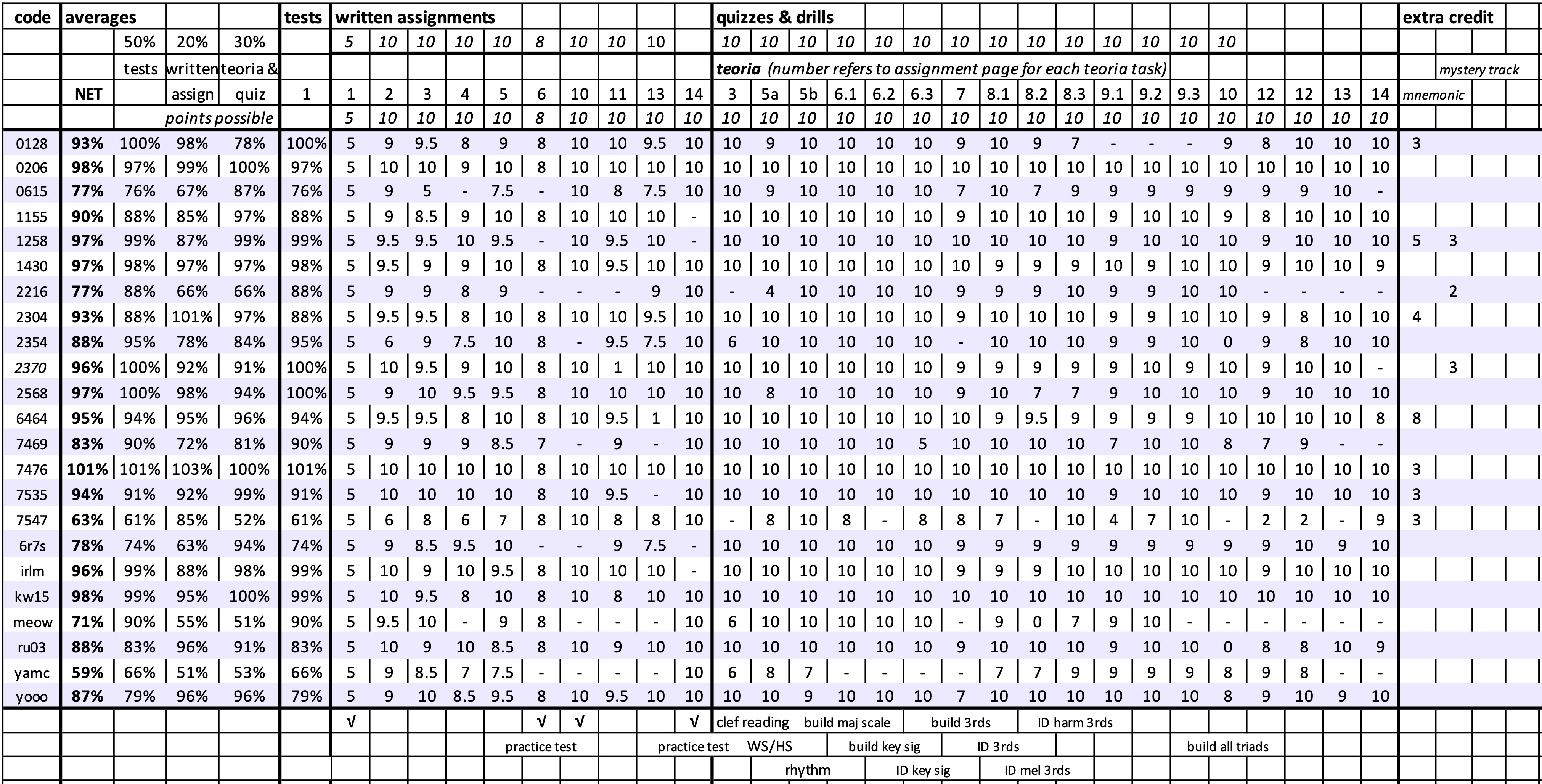 - quizzes and teoria drills, 30%