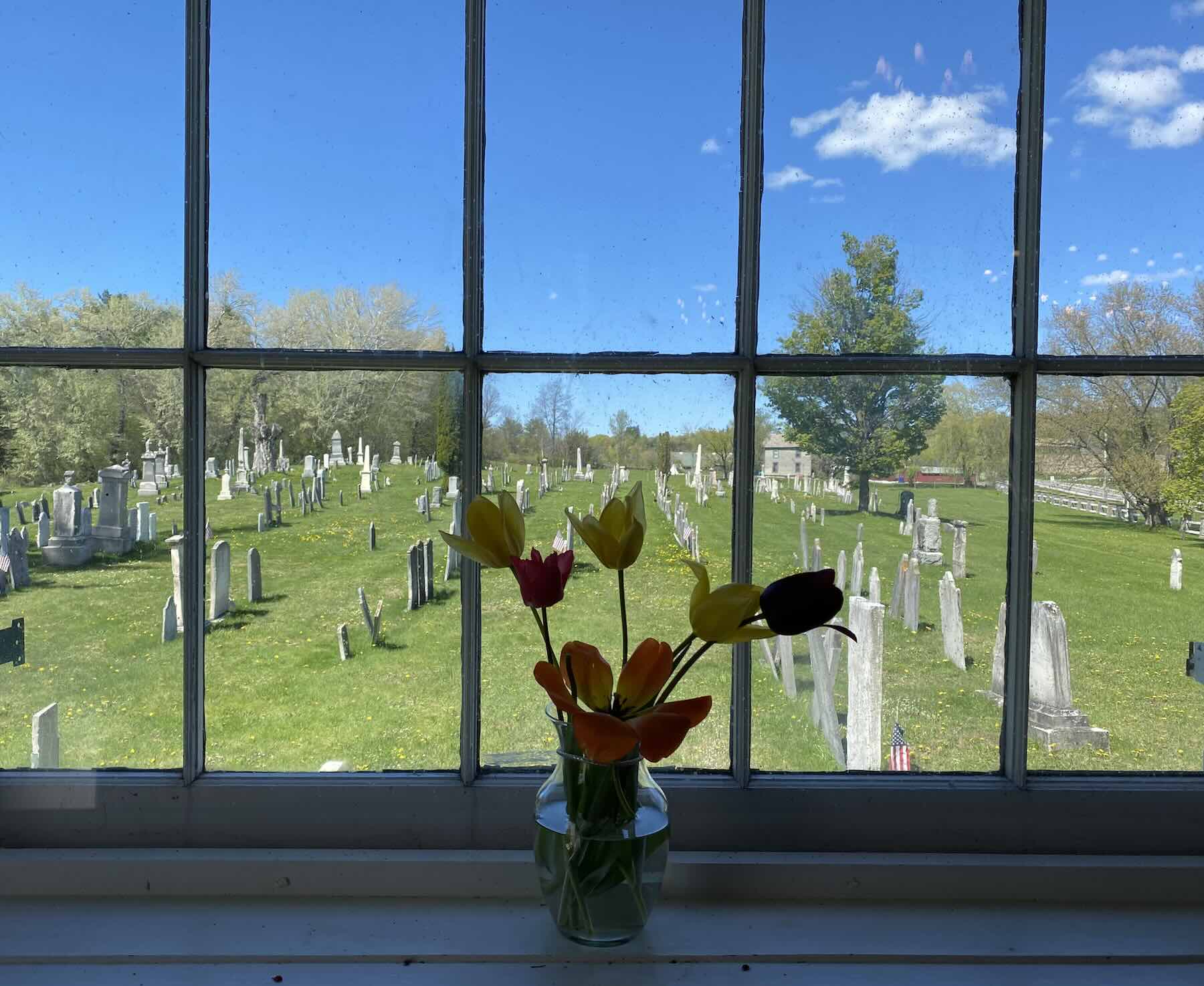A confluence of green eventsFirst Congo, cemetery at rightEmily Sunderman at the window...which looks onto the cemetery