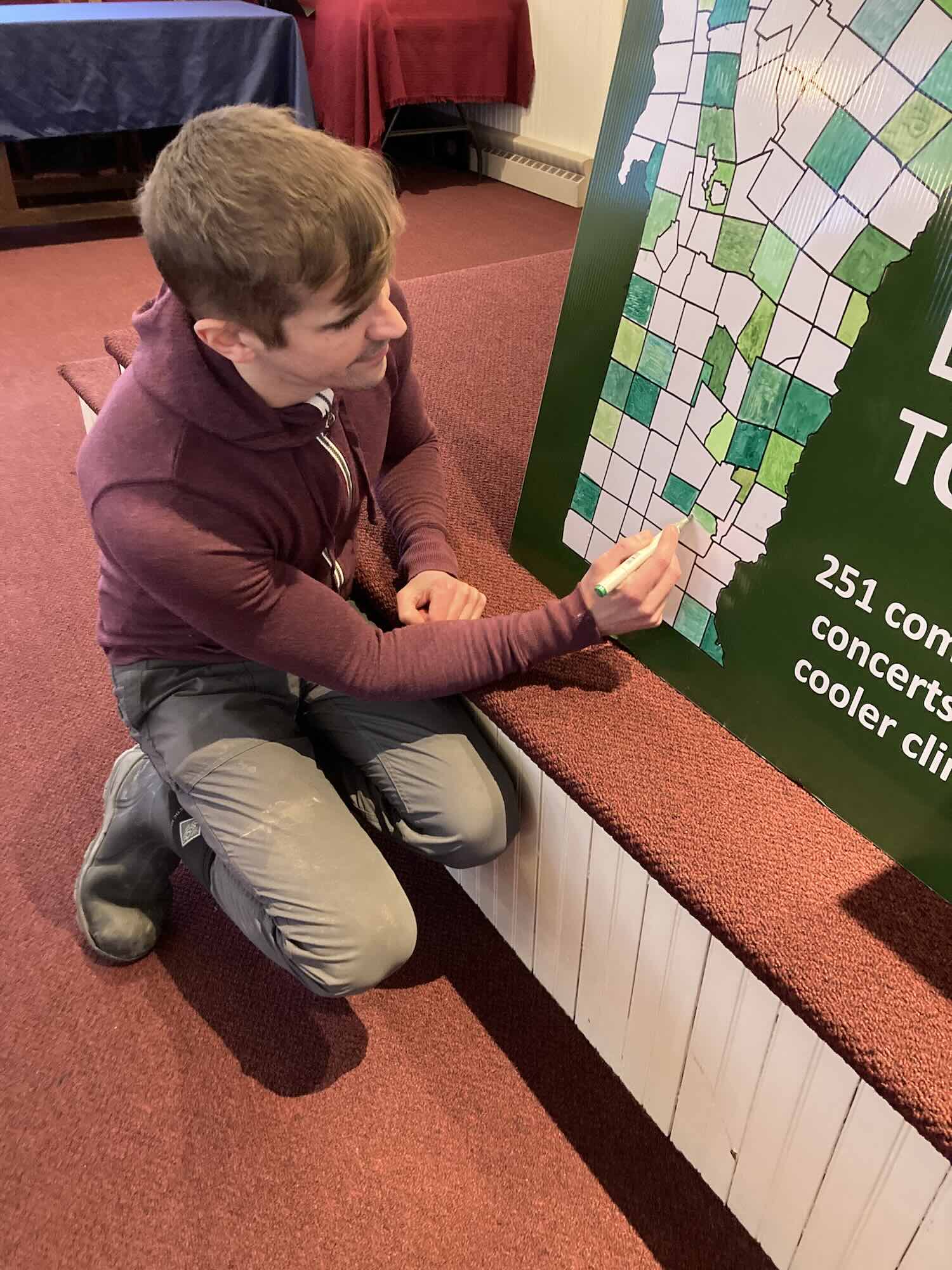 This was all not just timely but relevant to a key Play Every Town project theme: the celebration of Vermont’s vibrant sense of community, evidenced (among other ways) in its healthy tradition of annual town meeting and local democracy. We thought it made sense to collaborate with resistance music, so we played the gospel song “Keep Your Hand On the Plow”, which has been adapted as a civil rights anthem, with Dan on trombone, and Woody Guthrie’s “All You Fascists” with Dan on accordion.