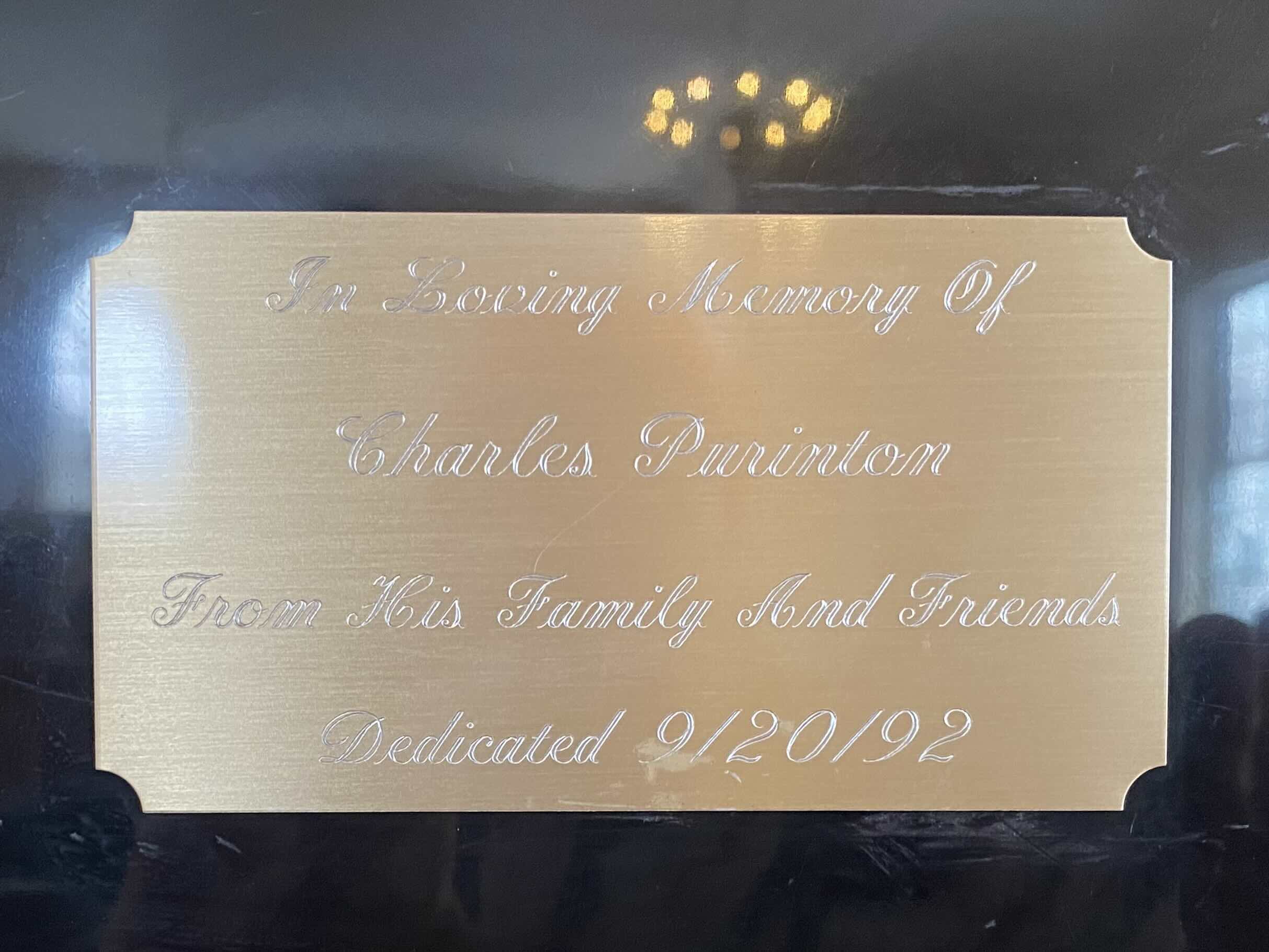 Samick serial no. IJ0498 was manufactured in South Korea in 1990. The piano was given in memory of Charles Purinton, who passed in 1981. The piano had a clean, clear tone and responsive action, typical of a well-maintained Samick. The relatively young company (founded 1958) also builds pianos under the brands of much older, venerable names, including Baldwin, Knabe, and Kohler & Campbell.